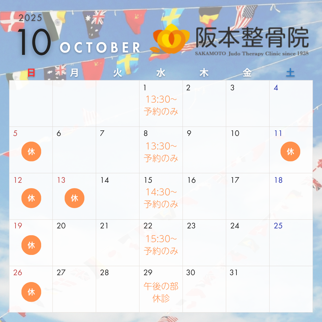 諸用により、11日(土)、29日(水)午後の部は休院いたします